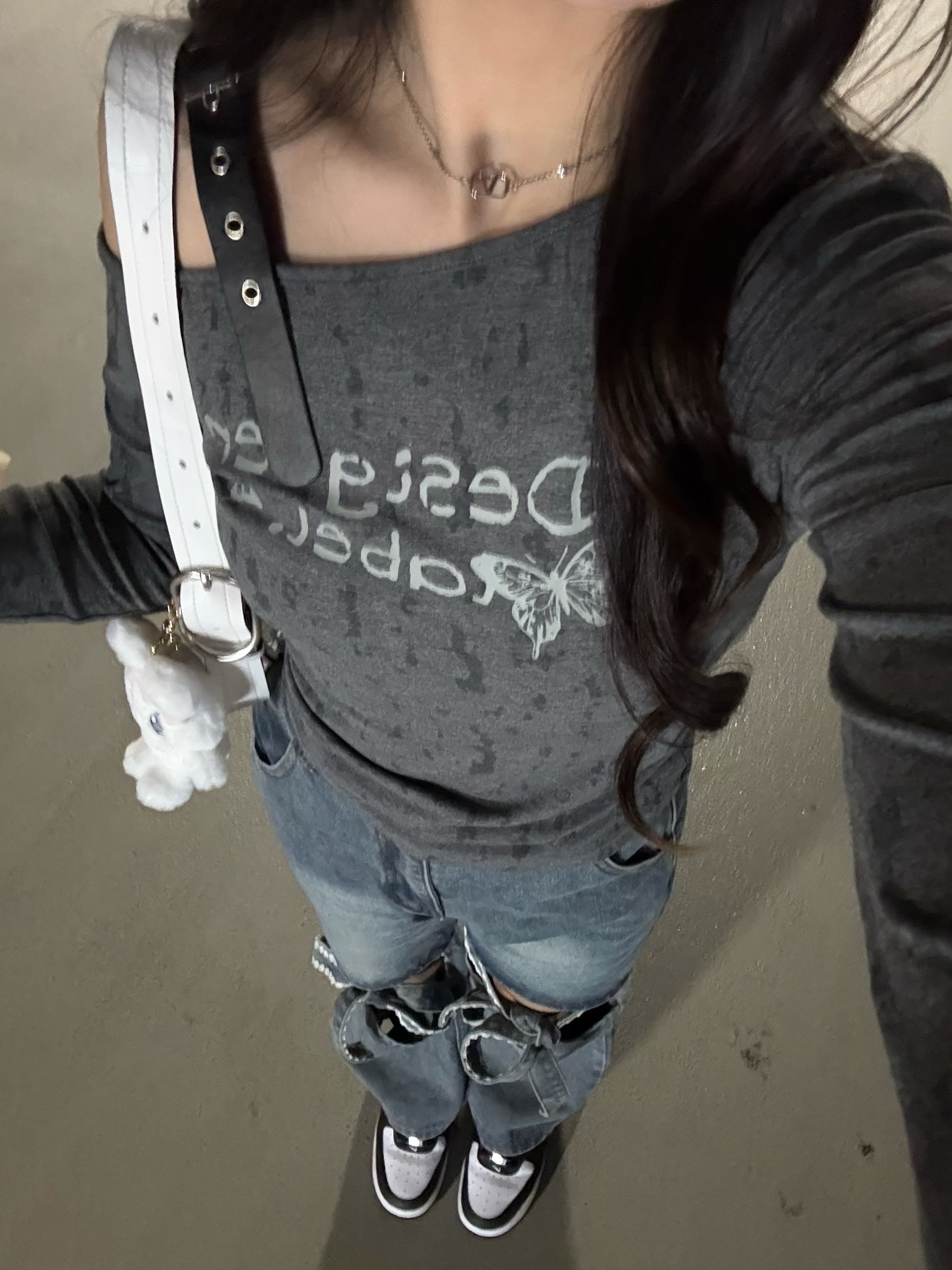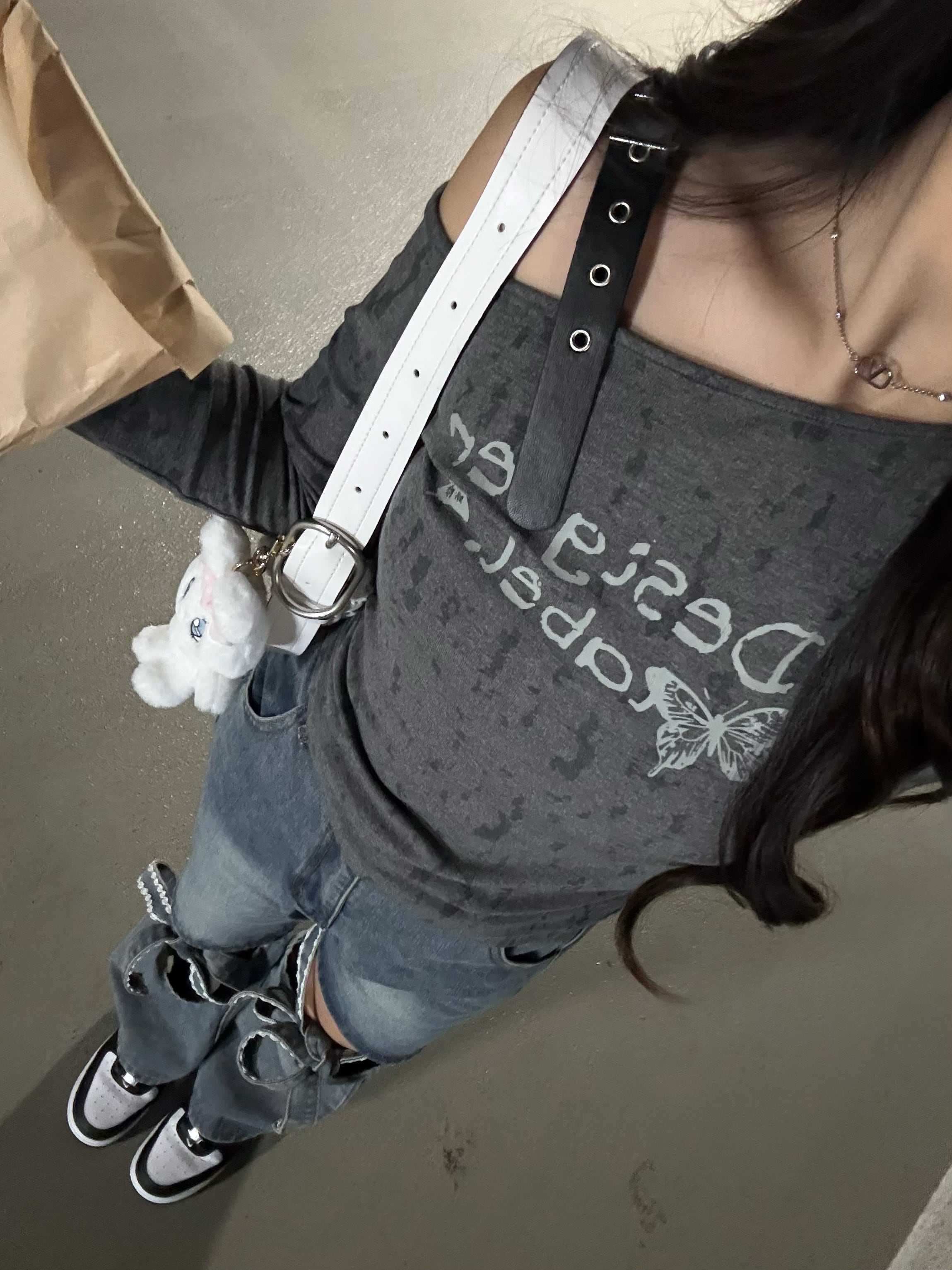 ・ヴィンテージ風のロゴ&バタフライプリントが、Y2K感たっぷりでトレンドライクに。