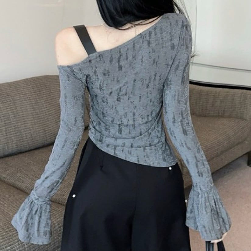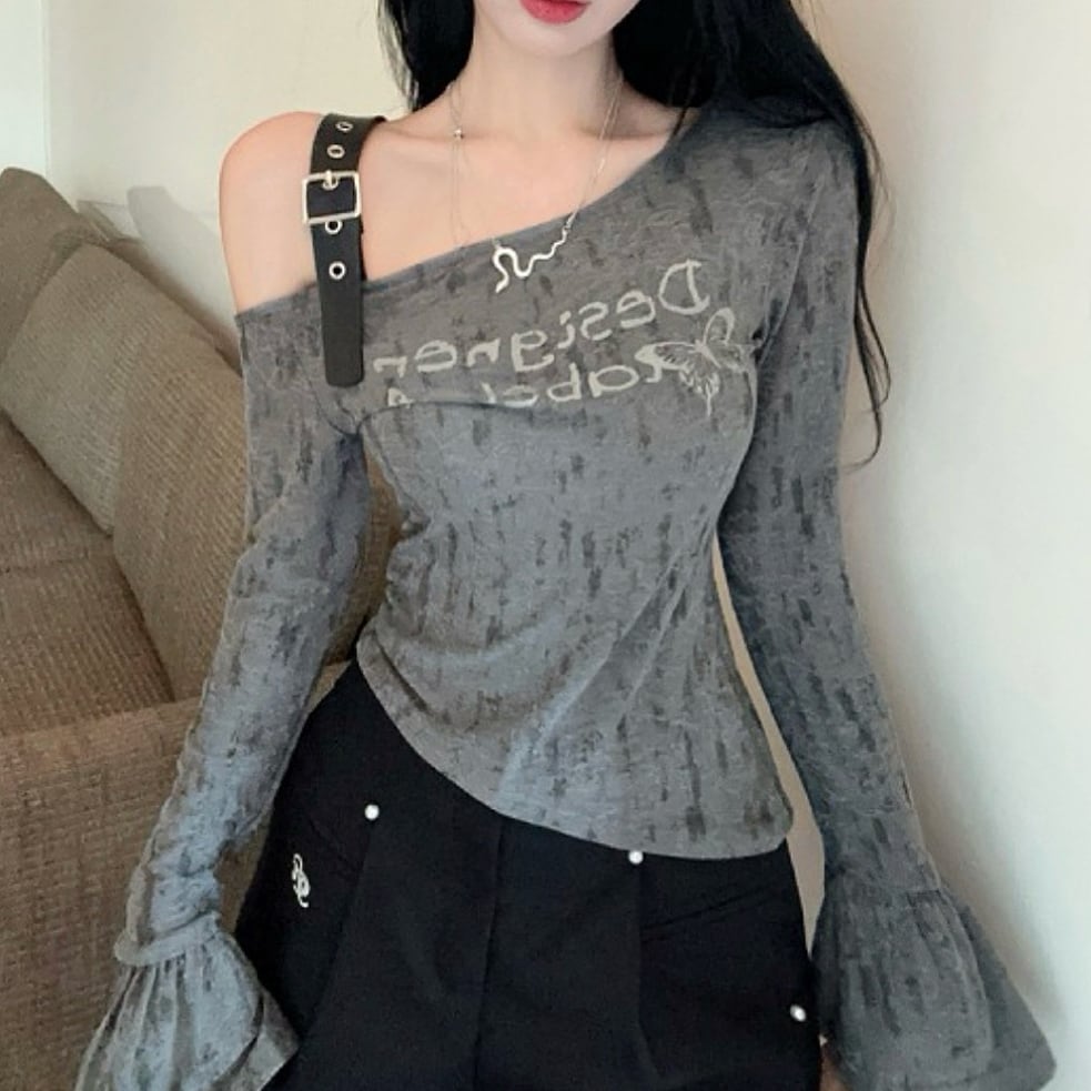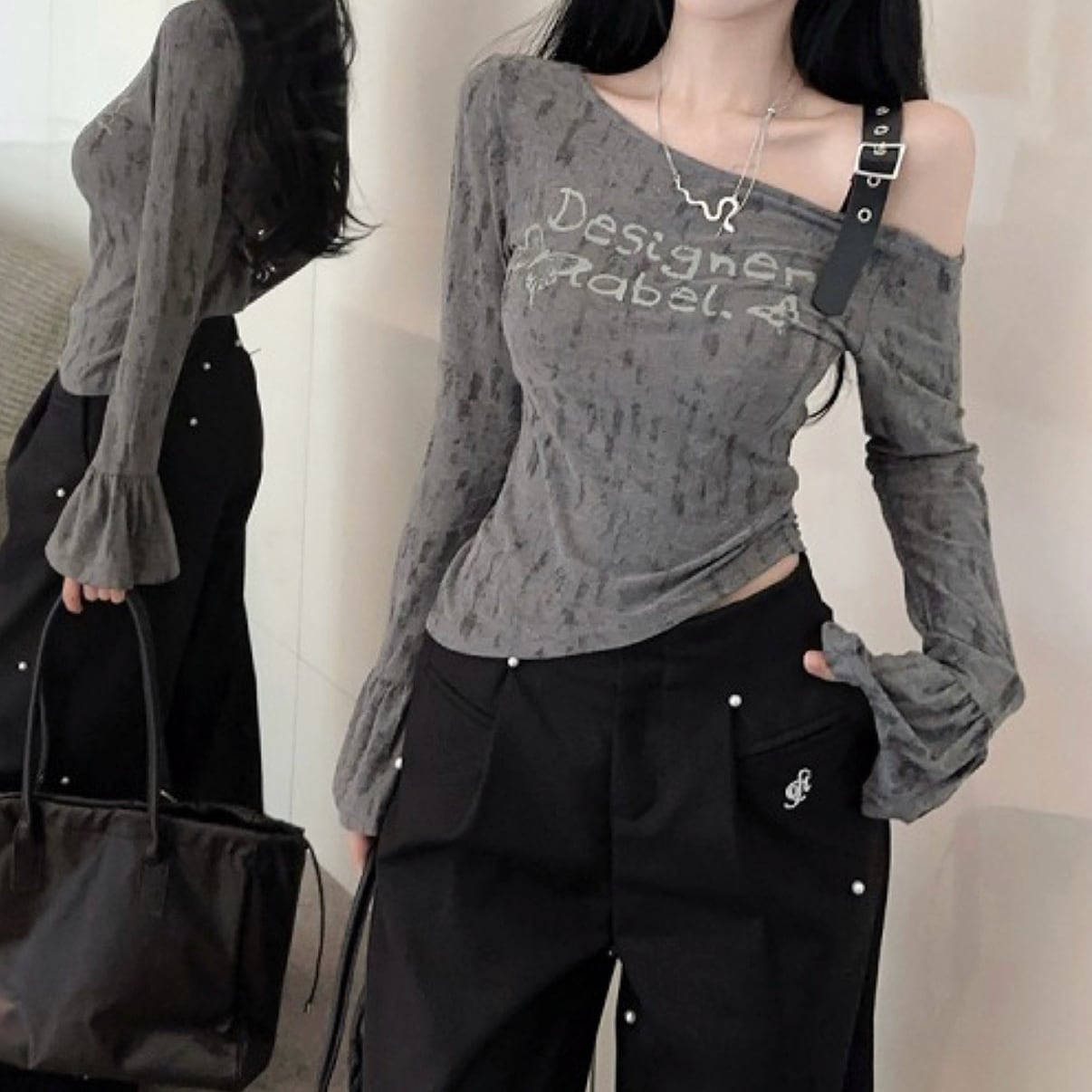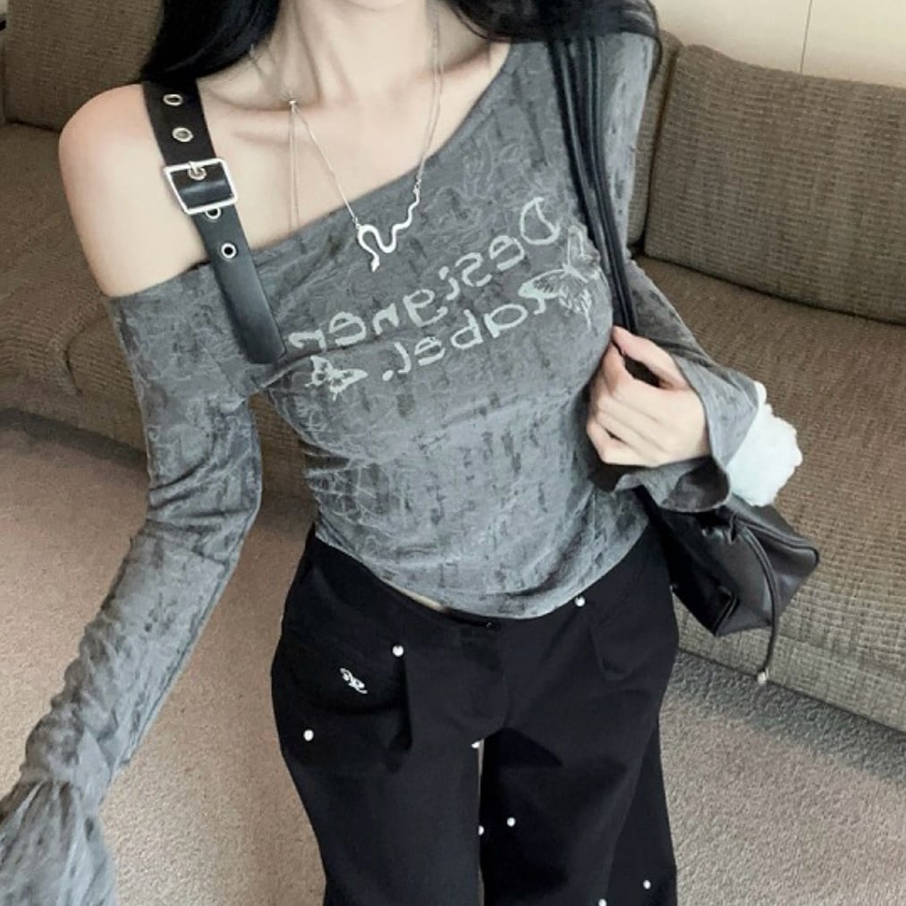 ・片方のショルダーにあしらわれたバックルストラップが、モード感と個性を引き立てるデザイン。